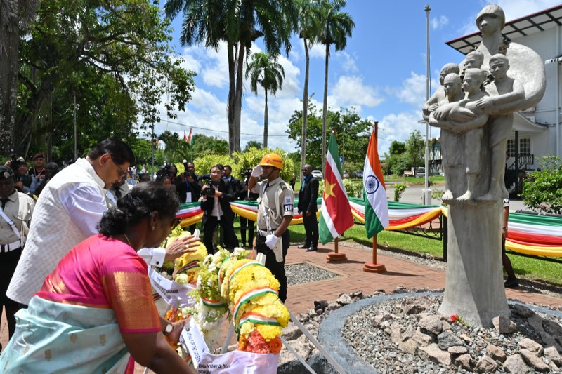 Earlier in the day, the President paid homage at the Baba and Mai monument, a symbolic representation of the first Indian man and woman, who first set foot in Suriname.