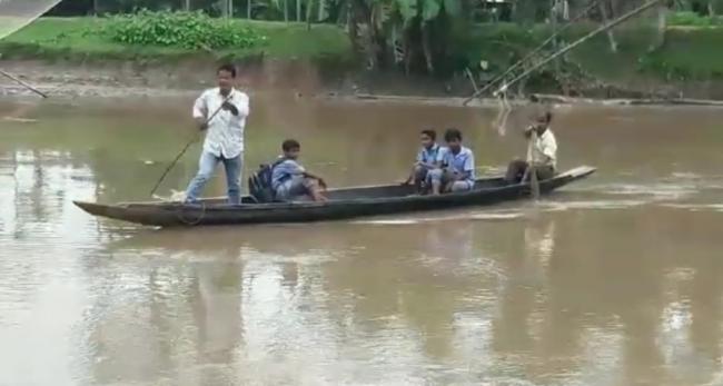 Speaking about the ordeal, a student of Palashabari Lalit Chandra Nath Middle English School said, “In the past three years, we crossed the river by using boat to reach our school. We are scared while crossing the river. It is difficult for us to cross the river during the rainy season.”