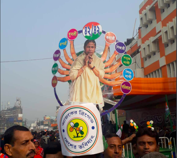 Ahead of the rally, Kolkata streets were almost smothered by the visages of the West Bengal Chief Minister in the trademark style of the Trinamool Congress supremo.