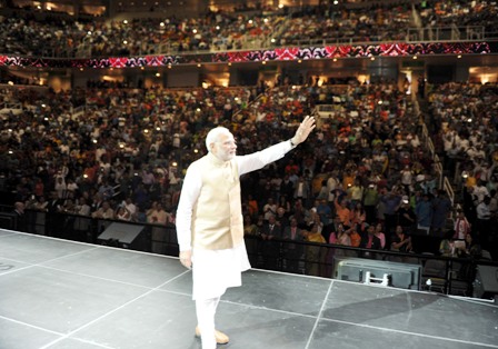 As the enamoured crowd was celebrating Modi's presence chanting "Modi, Modi," he made it deliver a virtual voice vote in his favour.