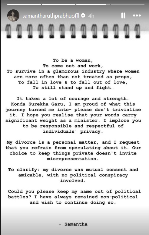"However, there have been various baseless and completely ridiculous gossip on the matter... the claim made by Konda Surekha is not only false, it is absolutely ridiculous and unacceptable... exploiting personal life decisions of celebrities for the sake of media headlines is shameful," he said.
