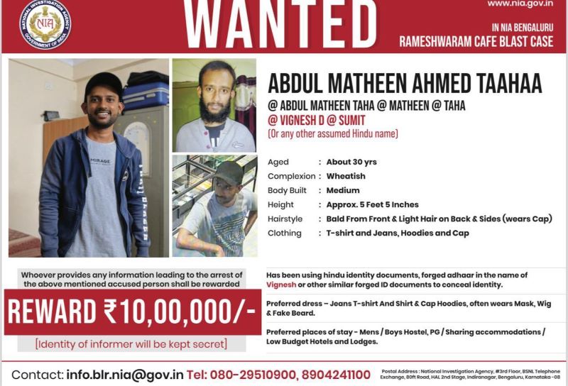 The suspects are Abdul Mateen Taha and Musavir Hussain Sazib. The NIA has identified Taha as the mastermind and Sazib as the key accused.