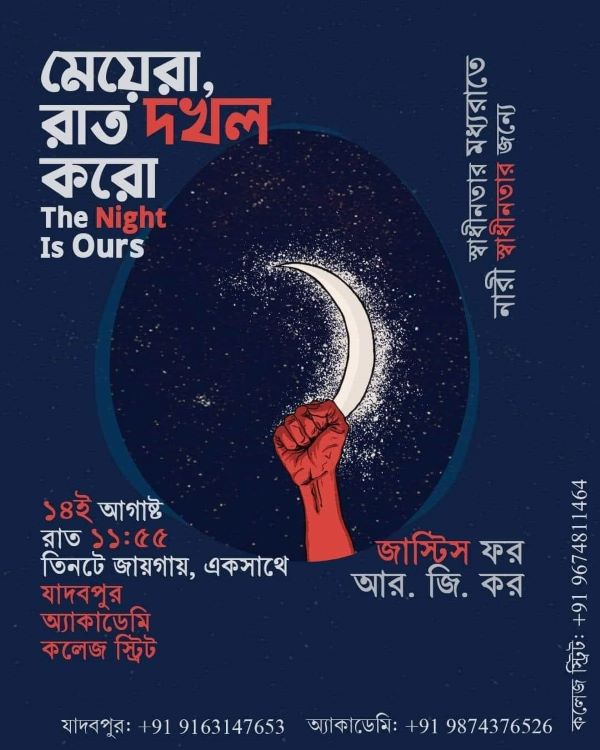 Demanding their voices to be heard and ensuring women can live a safe life in the state, the demonstration will take place in different junctions of Kolkata and across the state and will begin at 11.55 pm.