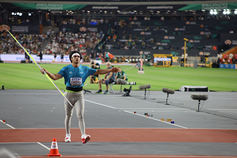 India's Olympic icon Neeraj Chopra added one more feather to his golden crown by winning the medal at the World Athletics Championships in the men's javelin event in Budapest.