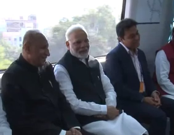 PM Shri @narendramodi take a ride in the newly inaugurated Hyderabad Metro. LIVE at https://t.co/STIUGNc7K7 pic.twitter.com/KlxkzqPFkp