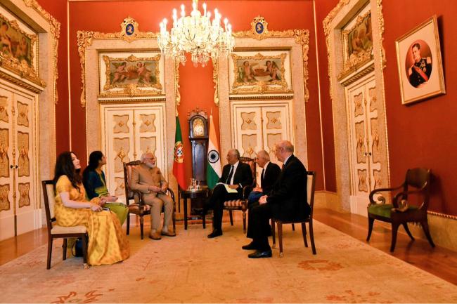 MEA Spokesperson Gopal Baglay tweeted: "A relationship marked by historical ties and strong partnership. PM @antoniocostapm welcomes PM @narendramodi at Palacio das Necessidades."