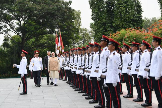 External Affairs Ministry spokesperson Raveesh Kumar tweeted, "PM @narendramodi was accorded a ceremonial welcome on his arrival at Istana - Presidential Palace of Singapore. Millennia old ties now powered by partnership in innovation and technology."