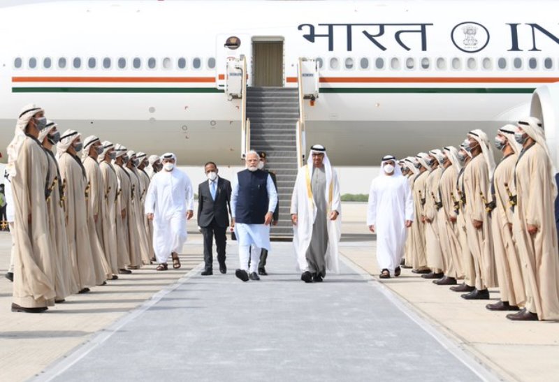 After reaching Abu Dhabi, Modi tweeted: "I am touched by the special gesture of my brother, His Highness Sheikh Mohamed bin Zayed Al Nahyan, of coming to welcome me at Abu Dhabi airport. My gratitude to him."
