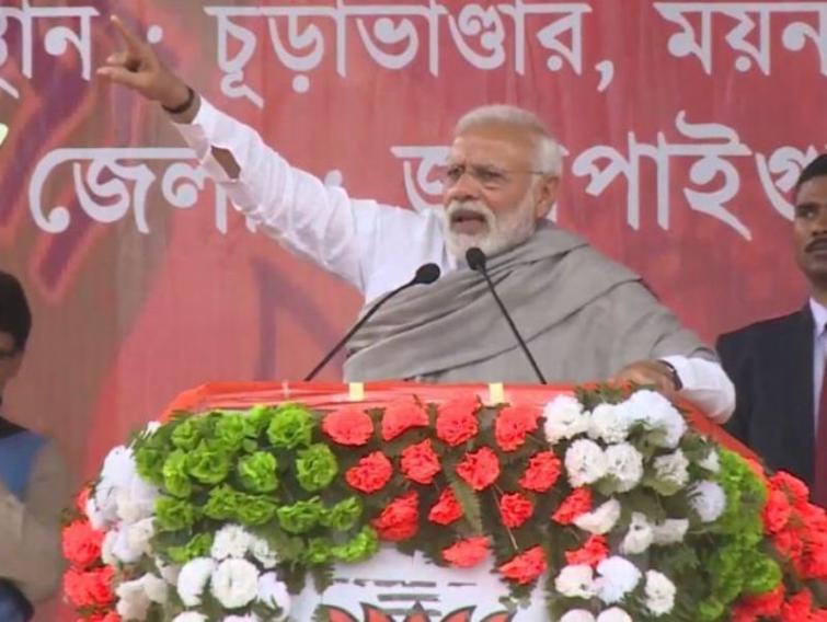 Jalpaiguri, Feb 8 (IBNS):At a time when state CM Mamata Banerjee recently sat on a dharna (sit-in protest) to demonstrate against CBI's actions against Kolkata Police chief Rajeev Kumar, Prime Minister Narendra Modi on Friday came down to West Bengal to attack the TMC-led government and also highlighted his Centre's developmental works in the past five years.