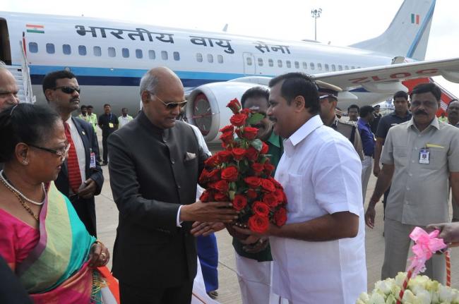 President Ram Nath Kovind arrives in Tamil Nadu; greeted by state governor and cabinet ministers