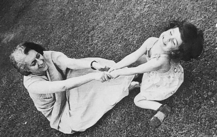 In the black-and-white image, Priyanka could be seen playing with her grand mother Indira Gandhi.