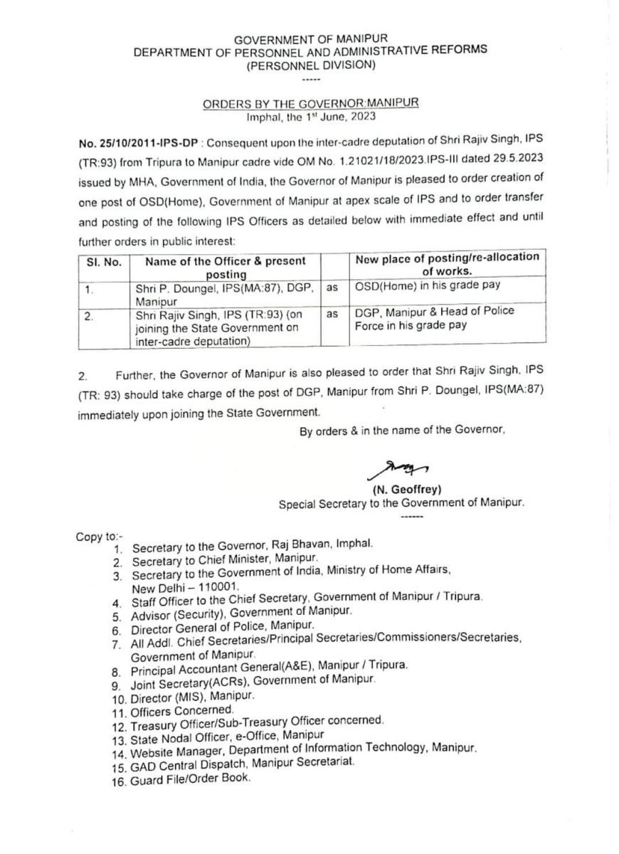 He was transferred to Manipur on May 29 through an inter-cadre deputation from the Central government.