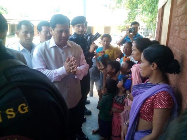 The Assam CM visited three relief camps at Kamalabari and Garmur areas and spent time with the flood-hit people.