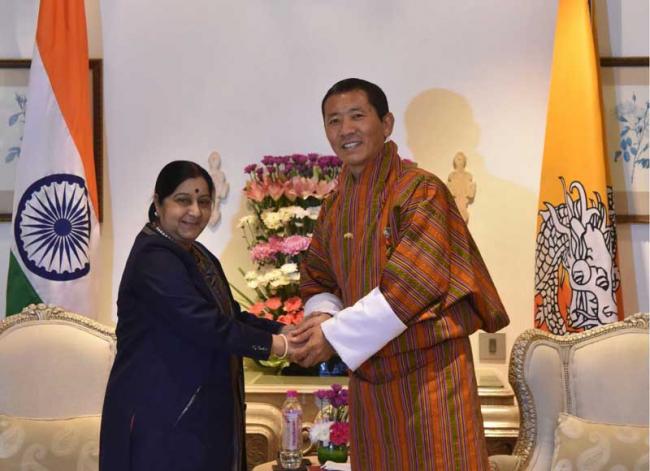 MEA spokesperson Raveesh Kumar tweeted: "Attaching priority to unique ties of friendship and cooperation. EAM @SushmaSwaraj called on @PMBhutan Dr Lotay Tshering. Congratulated him on assumption of high office of PM of Bhutan. Warm exchange of views on important aspects of our bilateral relationship."