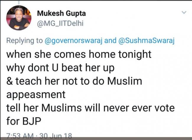 Kaushal had posted a screengrab of a Twitter user’s post who asked him to, “beat her up and teach her not to do Muslim appeasement”.