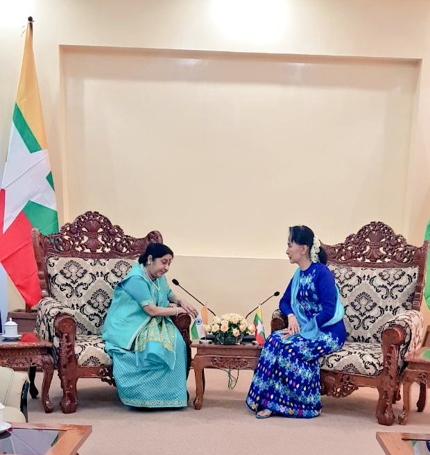 Sushma Swaraj visits Myanmar, meets top leaders