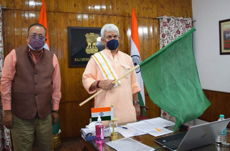 Srinagar: Taking a giant leap in the agriculture sector and adopting environment-friendly farmingpractices across the UT, Lieutenant Governor Manoj Sinha today flagged off the first consignment ofIFFCO’s Nano Urea (Liquid) from Kalol area of Gujarat through virtual mode.