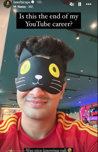 In another story, he posted a selfie with an eye mask, humorously captioned, "Is this the end of my YouTube career? Was nice knowing you all."