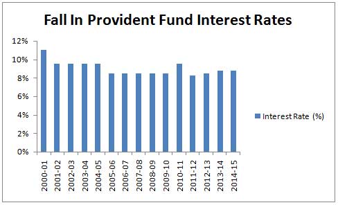 The following graph shows how PF interest rates have been declining in the past few years. It meansnet returns from provident funds will not be sufficient to meet your post-retirement needs.