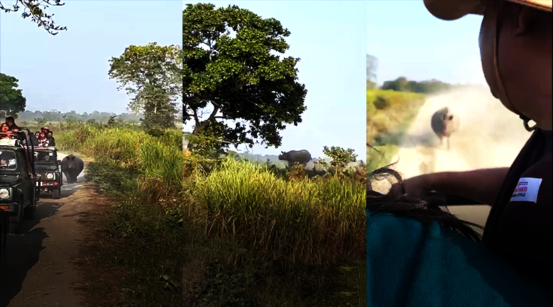 Assam: Rhino chases tourist convoy in Kaziranga National Park