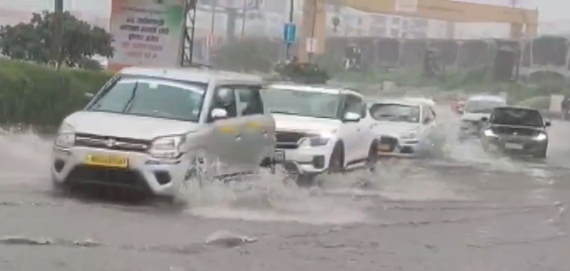 VIDEO | Mumbai: Heavy rain lashes the city; visuals of waterlogging from Bandra show disrupted traffic and flooded streets.