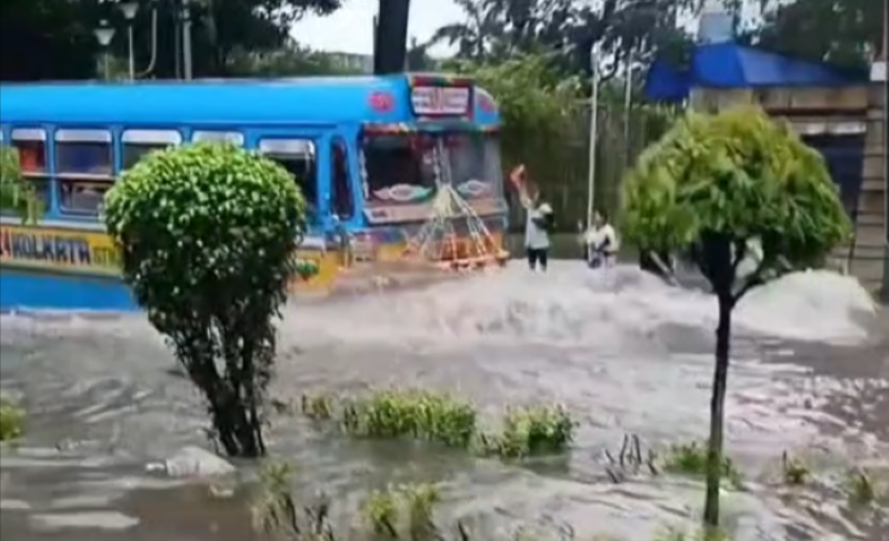 Kolkata heavy rain: Waterlogging on roads, normal lives disrupted, public transport out of gear #Kolkata #KolkataRain #kolkatarains #KolkataFlood #HeavyRainfall #KolkataWeather pic.twitter.com/y73gIqM6ry
