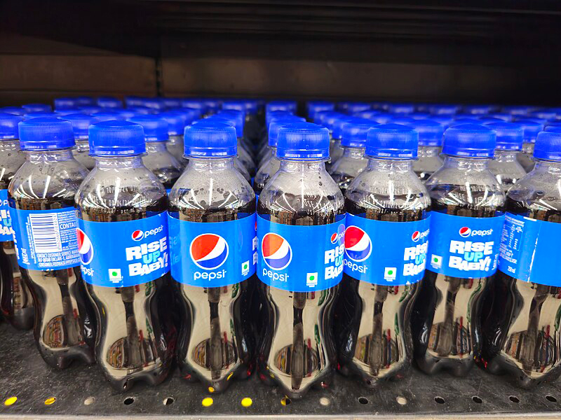 Its product lineup includes PepsiCo brands like Pepsi, Pepsi Black, Mountain Dew, Sting, Seven-Up, Mirinda, Tropicana, Gatorade, and Aquafina.