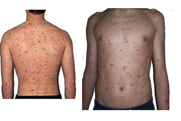 It usually starts on the chest, back, and face then spreads to the rest of the body. Other symptoms may include fever, feeling tired, and headaches. Symptoms usually last for five to ten days.