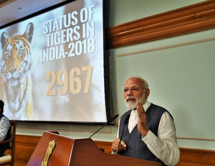 New Delhi, July 29 (IBNS): On the occasion of Global Tiger Day on Monday, Prime Minister Narendra Modi released the results of the fourth cycle of All India Tiger Estimation - 2018, at Lok Kalyan Marg in New Delhi where the data showed that the country now is home to 2967 tigers.