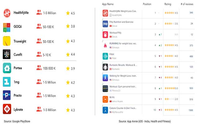 "HealthifyMe also excelled in its service quality during the period and its user ratings on the App Store grew to 4.5 Stars thus becoming India’s highest rated Health-tech according to App Annie. At the rating of 4.5, according to App Annie, HealthifyMe is also ahead of all e-Commerce and payments apps in India," an official statement claimed.