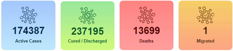 New Delhi/IBNS: India's COVID-19 tally crossed 4.25 lakh mark as 14,821 new cases reported in the past 24 hours, as per Ministry of Health released data on Monday.