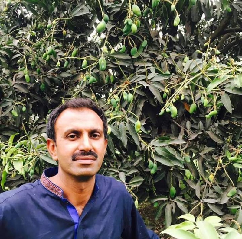Shahid Hameed Bhutta, an organic mango grower from Pakistan, uses natural methods like green fertilizer and neem extract to grow his mangoes without chemicals.(Photo by Muhammad Irtaza)