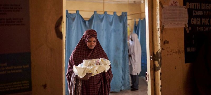 A woman holds a newborn baby inside the labour ward of a hospital in Sokoto state, Nigeria. Photo: UNICEF/David Boman