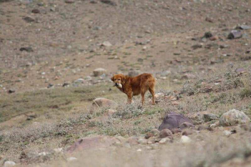 A free-ranging dog with a small animal prey near Chandratal, Spiti Valley. Image by Priyanka Justa.