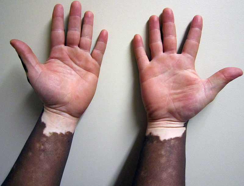 As per Mayo Clinic website, Vitiligo (vit-ih-LIE-go) is a disease that causes loss of skin color in patches. The discolored areas usually get bigger with time. The condition can affect the skin on any part of the body. It can also affect hair and the inside of the mouth.