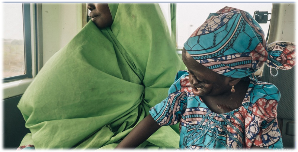 A 5-year-old girl from Sokoto State with her mother Hauwa on their way to the Noma hospital.Photo Courtesy: Inediz/C. Jeantet and F. Caterini Sakina