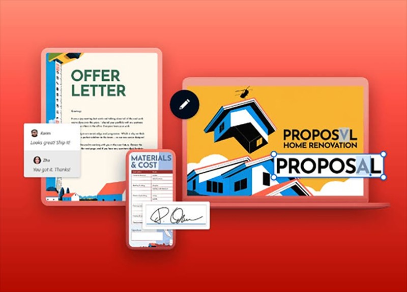 Adobe Acrobat allows for better and easier collaboration with PDFs across digital spaces. Using Acrobat online, you can provide feedback directly in the PDF document for all to see. You can add sticky notes, suggest edits in-line by replacing or adding text, and even tag teammates directly to keep feedback both clear and collaborative.