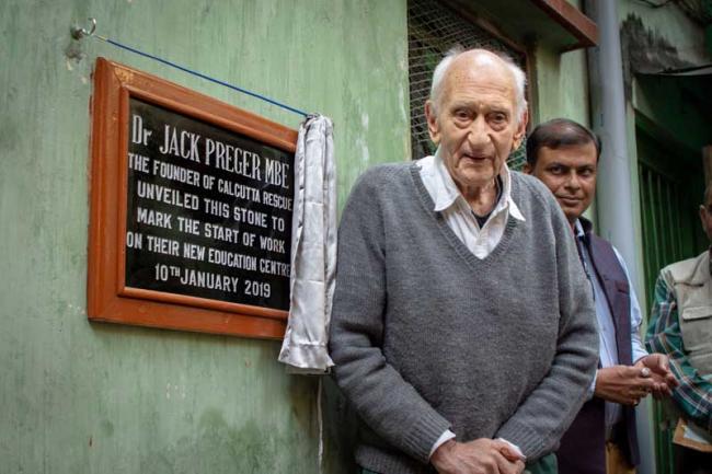 In his final act as Chairperson of Calcutta Rescue, Dr Jack was  given the honour of unveiling a foundation stone at the site of the charity’s new education centre in North Kolkata. A fundraising campaign is underway to renovate the old building which, when open, will support around 350 children from nearby slums.