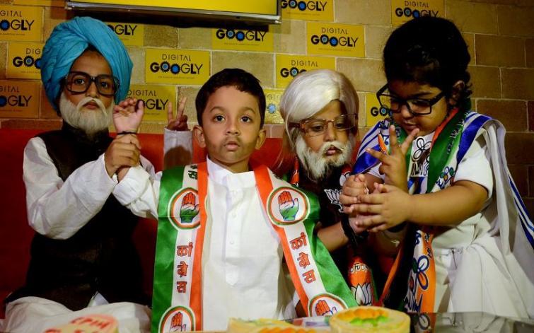 Tiny tots decked up as Prime Minister Narendra Modi, West Bengal Chief Minister Mamata Banerjee and Congress president Rahul Gandhi presented a different kind of colourful election ambience at the launch function.