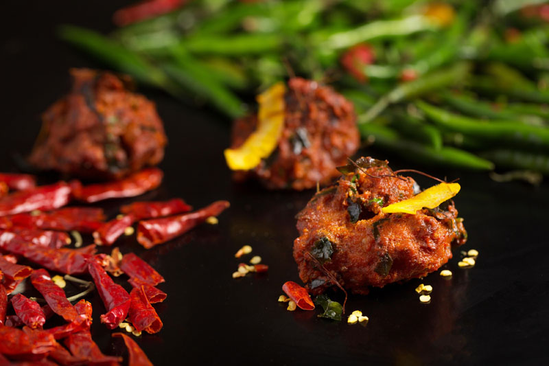 Signature dishes include Farzi Caesar Salad, Parmesan Snow ; Hass Avocado Chaat, Beetroot Gel; Dal Chawal Arancini, Achaar Papad Chutney; Vada Pav # Farzified; Guntur Chilli Chicken ; Tempura Fried Prawns with Nimboo Mirch Air ; Prawn 65 with Cherry Tomato Chutney ; Kolkata Mushroom Skewers, Green Pea Kathi ; Gupta Ji Burger with Onion Mint Chutney to name a few.