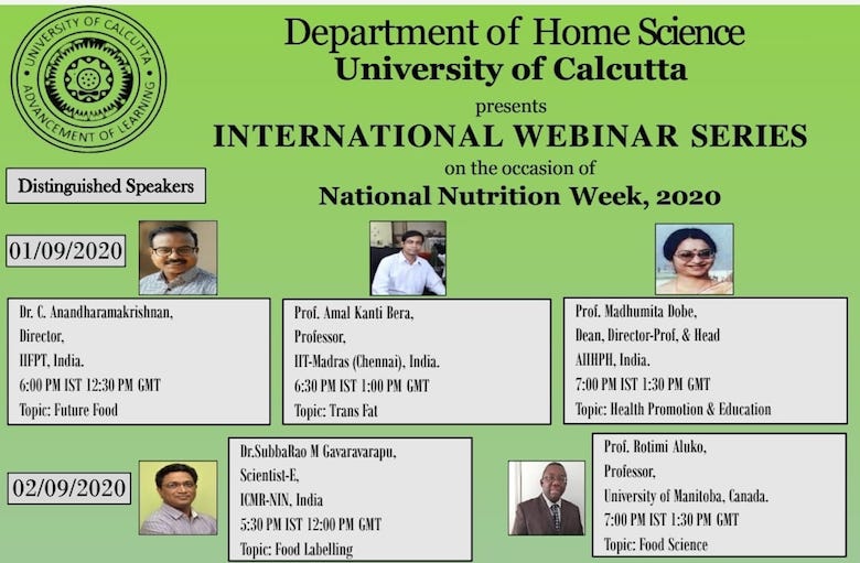 During the National Nutrition Month (September 2020), an International Webinar Series was organised by the Department, where internationally acclaimed scientists and professors were invited to talk about their subjects and their areas of research, and interact with the participants.