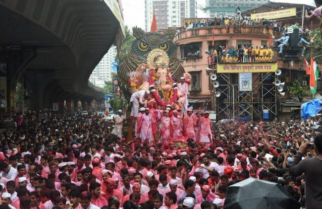 Mumbai, Sep 15 (IBNS): Thousands of devotees congregated in Mumbai to bid adieu to the famous Ganesh idol, Lalbaugcha Raja (King of Lalbaug), on Thursday as the idol was taken for immersion in the Arabian Sea in Girgaon Chowpatty.