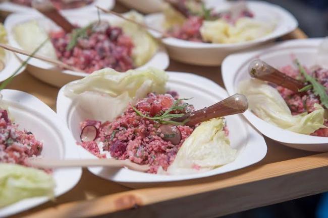 Music heralded the arrival of the first of the five course meal -- Peruvian Root Veggie Ceviche -- a typical seafood dish modified with root vegetables and served with quinoa tossed, feta cheese coated, limoncello vinaigrette dressing.