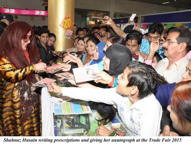 New Delhi, Nov 27 (IBNS) India beauty icon, Shahnaz Husain visited India International Trade Fair 2015 being held at ITPO Pragati Maidan, New Delhi, and provided free consultation on various skin and hair problems including hair-fall, dandruff, anti-ageing, pigmentation and scars, at Hall number 12, on Monday.