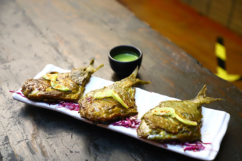 How about some Desi Churros (papad stuffed mutton keema cigar); Le Khoka (Harissa grilled Golda Chingri or large river prawns) and Peyarrelal, which is Charmula Pomfret prepared with vodka.