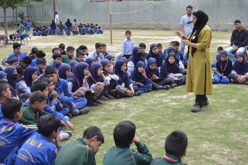 Mir during a training session with students teaching them about wildlife conservation. Photo by Wildlife SOS.