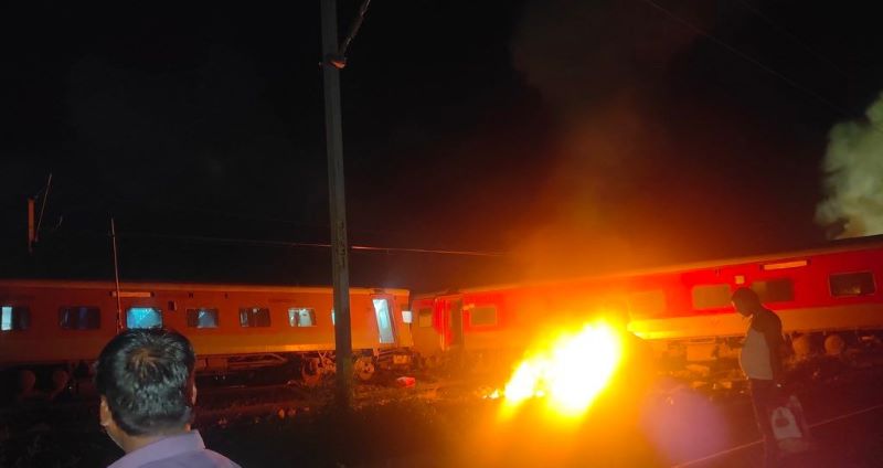 At least two coaches of the express train have also caught fire and 10 injured people have reportedly been admitted to a hospital nearby.