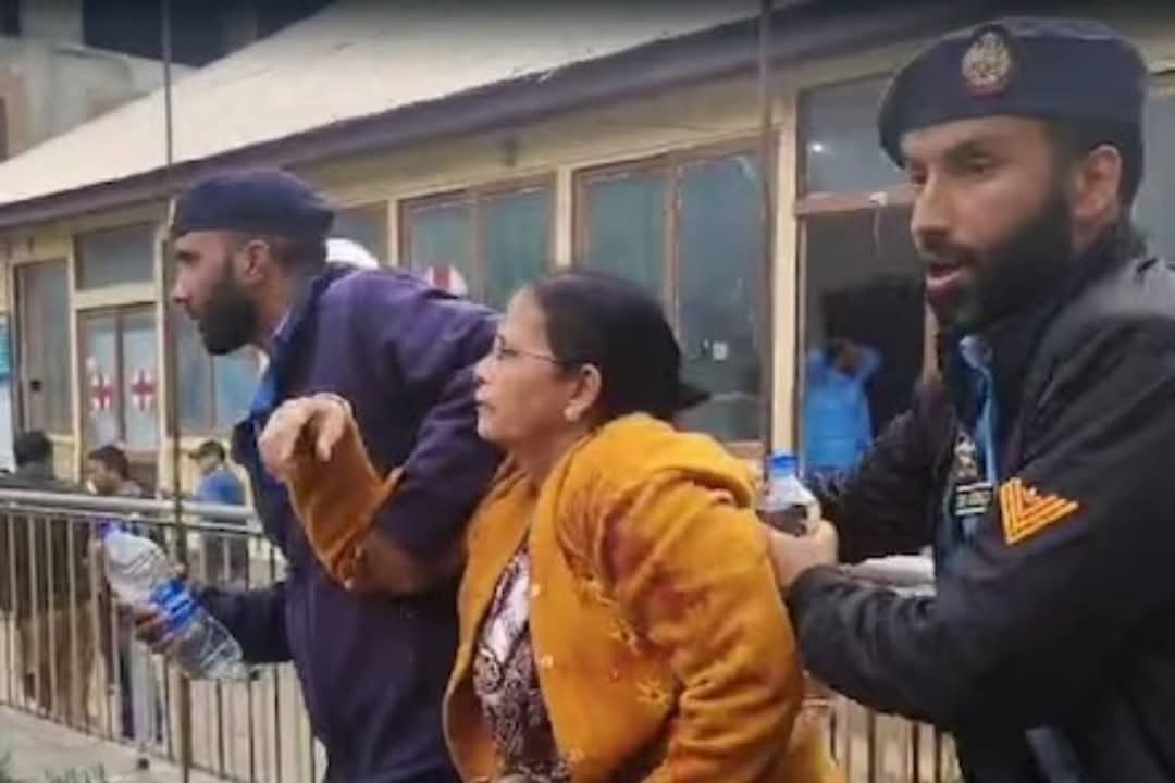 Security officers escorting a tourist survivor in the aftermath of the Pahalgam terror strike. Photo courtesy: screenshot from X
