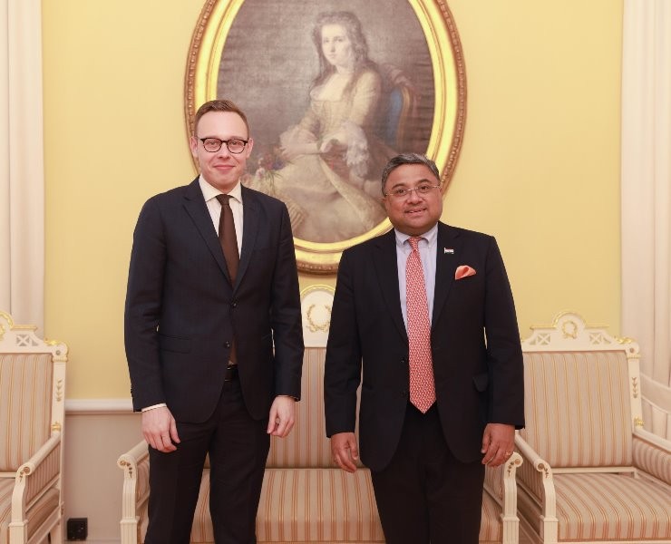 Secretary (West) Sibi George called on Matias Marttinen, Minister of Employment, Republic of Finland, during his visit to Helsinki. Photo: Randhir Jaiswal/X