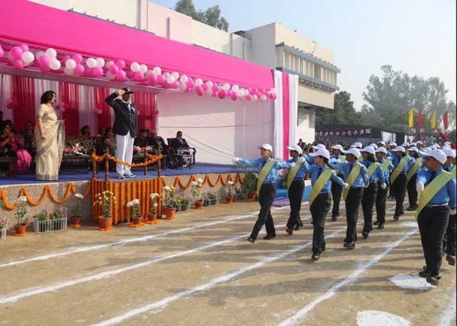 The ceremonial March Past included troops from the five Houses, Special Wing, Primary Wing and NCC displaying strength and cohesiveness.
